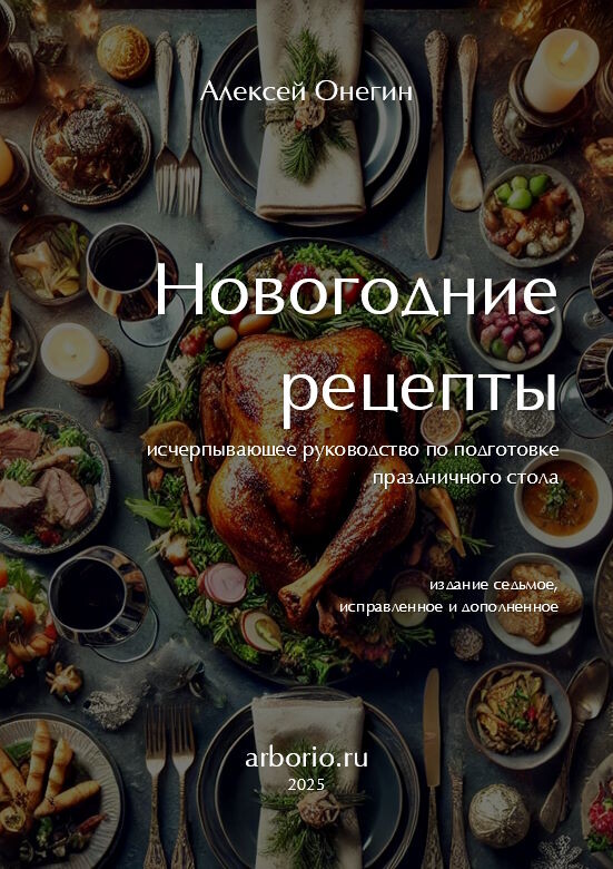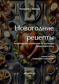 Книга «Новогодние рецепты» — 49 страниц, 200 с лишним блюд, 9 готовых меню, раздел похмельных завтраков и практические советы для тех, кто хочет составить праздничное меню быстро и без усилий.